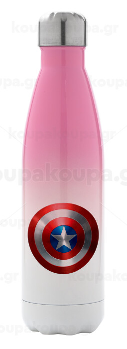 Captain America, Metal mug thermos Pink/White (Stainless steel), double wall, 500ml