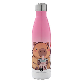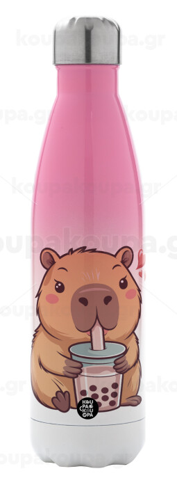 Capybara Bubble Tea, Metal mug thermos Pink/White (Stainless steel), double wall, 500ml