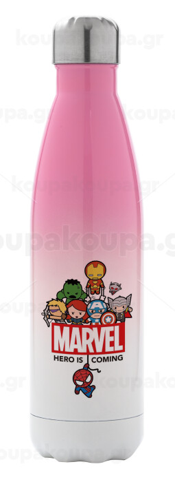 MARVEL, Metal mug thermos Pink/White (Stainless steel), double wall, 500ml