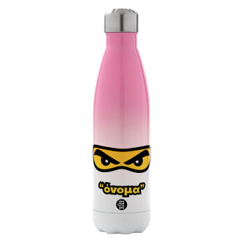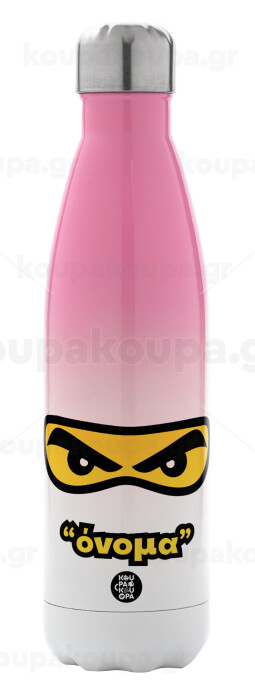 Ninja Eyes με όνομα, Metal mug thermos Pink/White (Stainless steel), double wall, 500ml