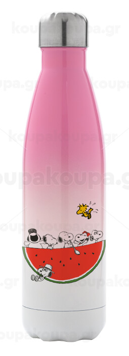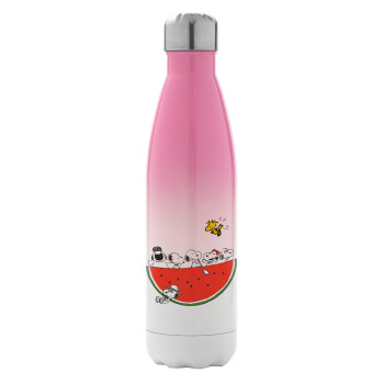 Snoopy summer, Metal mug thermos Pink/White (Stainless steel), double wall, 500ml