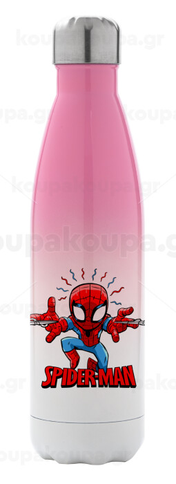 Spiderman flying, Metal mug thermos Pink/White (Stainless steel), double wall, 500ml