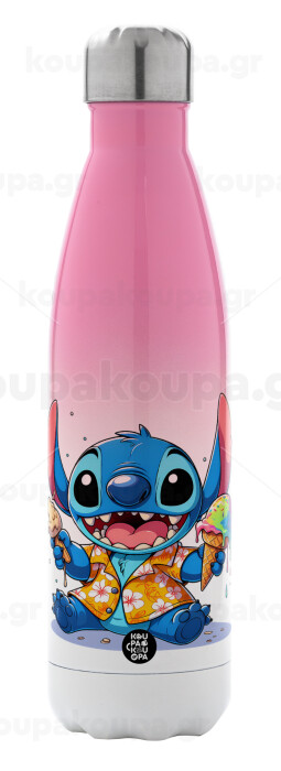 Stitch Ice cream, Metal mug thermos Pink/White (Stainless steel), double wall, 500ml