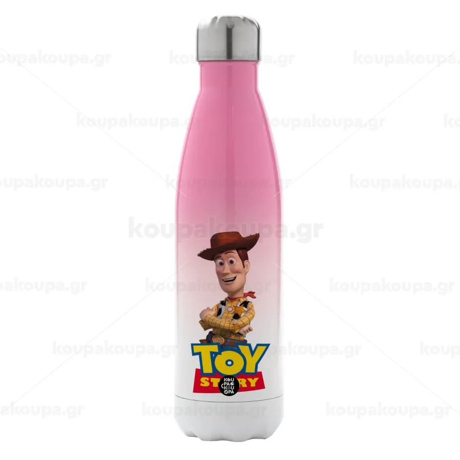 Woody cowboy, Metal mug thermos Pink/White (Stainless steel), double wall, 500ml