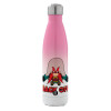 Yosemite Sam Back OFF, Metal mug thermos Pink/White (Stainless steel), double wall, 500ml