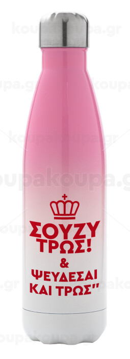 Σούζυ και ψεύδεσαι και τρως, Metal mug thermos Pink/White (Stainless steel), double wall, 500ml