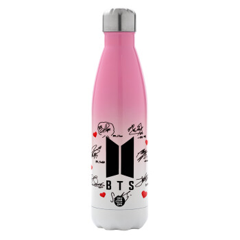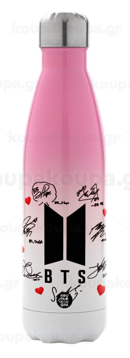 BTS signs, Metal mug thermos Pink/White (Stainless steel), double wall, 500ml
