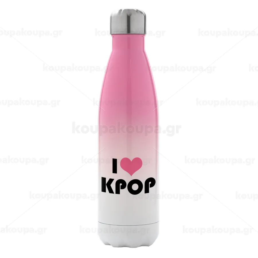 I Love KPOP, Metal mug thermos Pink/White (Stainless steel), double wall, 500ml