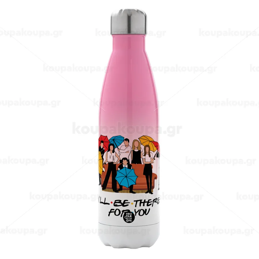 Friends cover, Metal mug thermos Pink/White (Stainless steel), double wall, 500ml