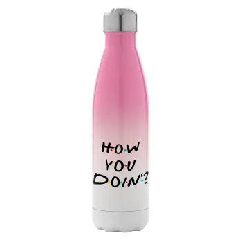 Friends How You Doin'?, Metal mug thermos Pink/White (Stainless steel), double wall, 500ml