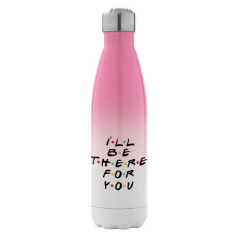 Friends i i'll be there for you, Metal mug thermos Pink/White (Stainless steel), double wall, 500ml