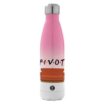 Friends Pivot, Metal mug thermos Pink/White (Stainless steel), double wall, 500ml