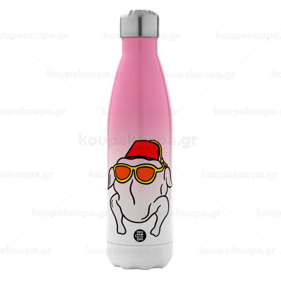 Friends turkey, Metal mug thermos Pink/White (Stainless steel), double wall, 500ml