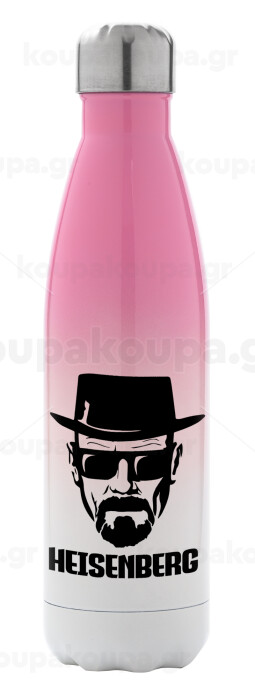 Heisenberg breaking bad, Metal mug thermos Pink/White (Stainless steel), double wall, 500ml