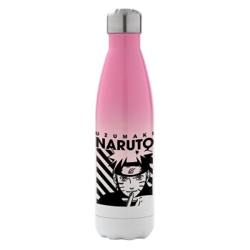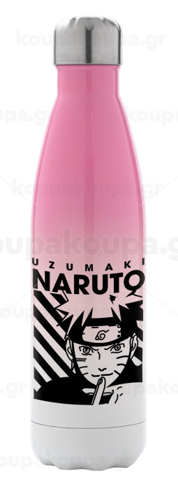 Naruto uzumaki, Metal mug thermos Pink/White (Stainless steel), double wall, 500ml
