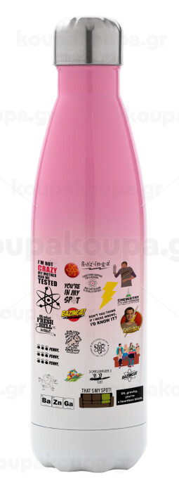The Big Bang Theory pattern, Metal mug thermos Pink/White (Stainless steel), double wall, 500ml