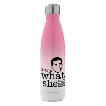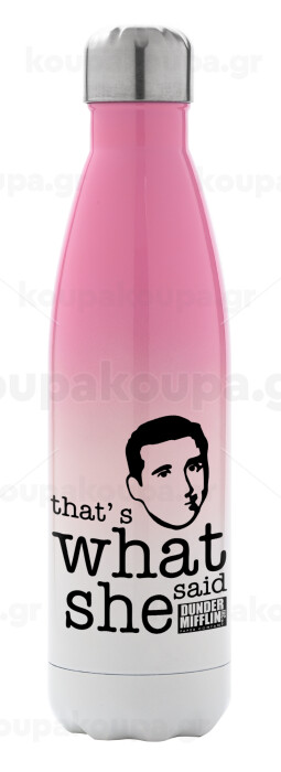 The office Michael That's what she said, Metal mug thermos Pink/White (Stainless steel), double wall, 500ml