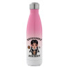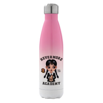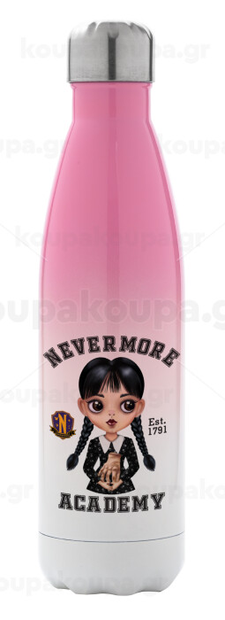 Wednesday Adams, nevermore, Metal mug thermos Pink/White (Stainless steel), double wall, 500ml