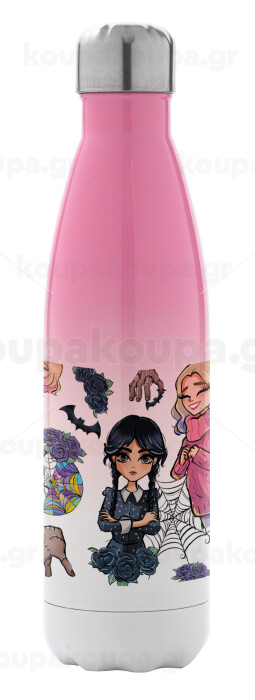 Wednesday and Enid Sinclair, Metal mug thermos Pink/White (Stainless steel), double wall, 500ml