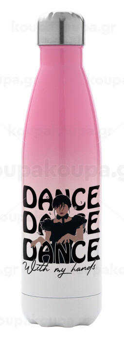 Wednesday dance dance dance, Metal mug thermos Pink/White (Stainless steel), double wall, 500ml