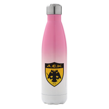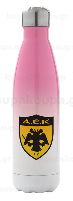 ΑΕΚ, Metal mug thermos Pink/White (Stainless steel), double wall, 500ml