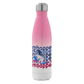 Kylian Mbappé, Metal mug thermos Pink/White (Stainless steel), double wall, 500ml