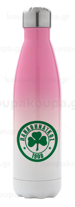 ΠΑΟ Παναθηναϊκός, Metal mug thermos Pink/White (Stainless steel), double wall, 500ml