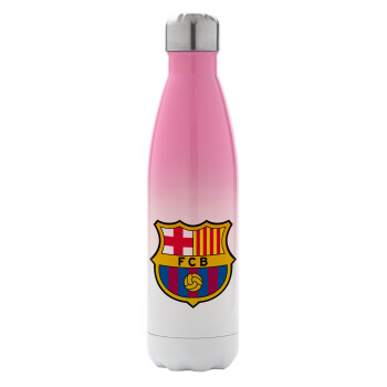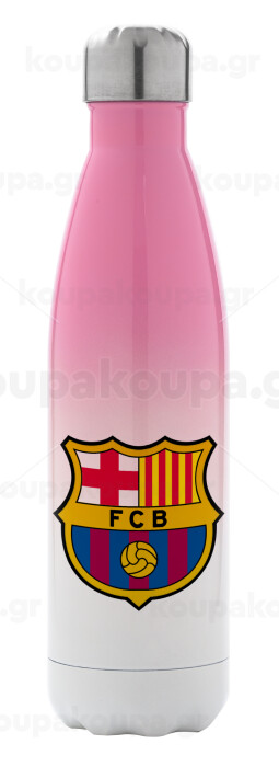 Barcelona FC, Metal mug thermos Pink/White (Stainless steel), double wall, 500ml