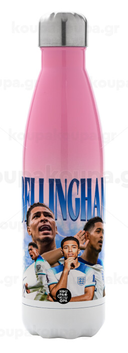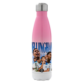 Jude Bellingham, Metal mug thermos Pink/White (Stainless steel), double wall, 500ml