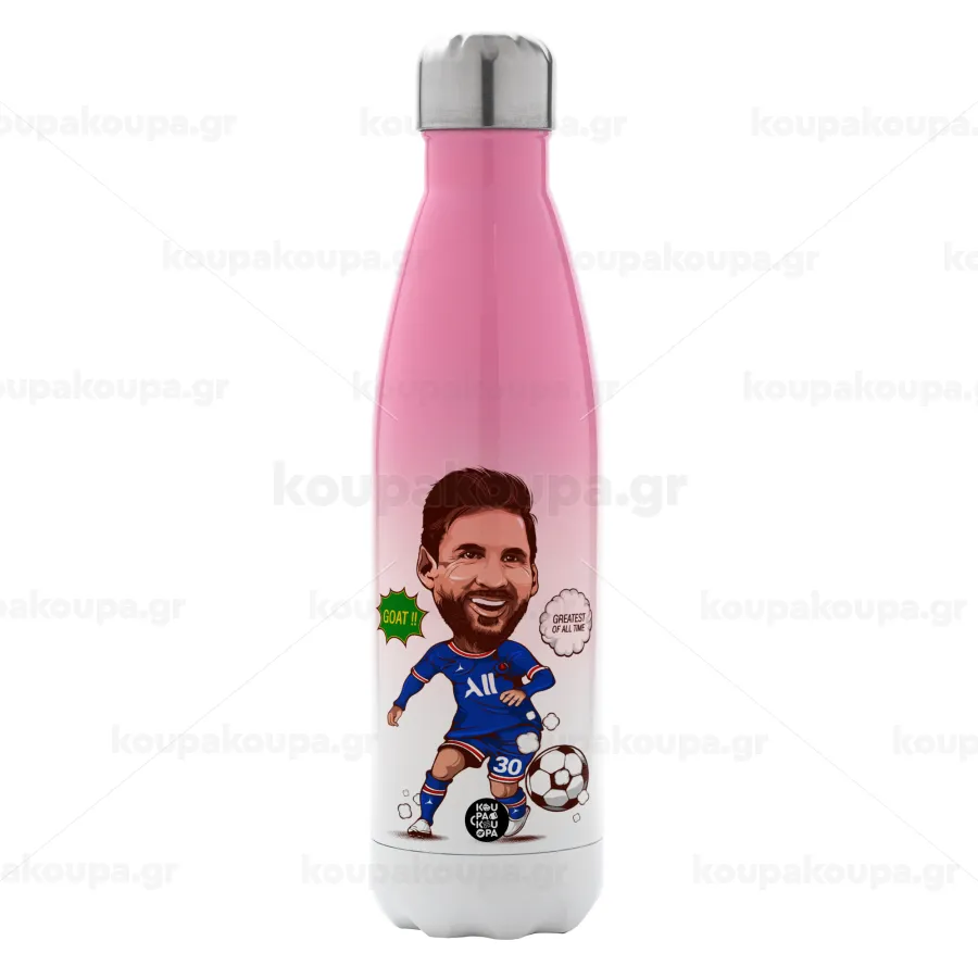 Lionel Messi drawing, Metal mug thermos Pink/White (Stainless steel), double wall, 500ml