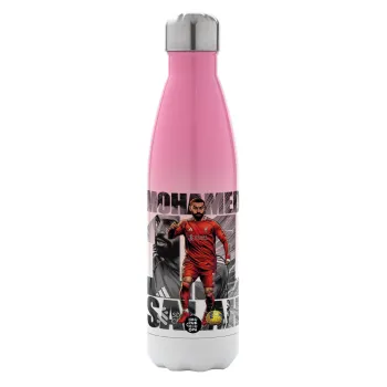 Mohamed Salah (Μοχάμεντ Σαλάχ), Metal mug thermos Pink/White (Stainless steel), double wall, 500ml