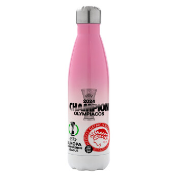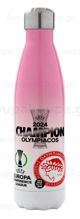 Olympiacos UEFA Europa Conference League Champion 2024, Metal mug thermos Pink/White (Stainless steel), double wall, 500ml