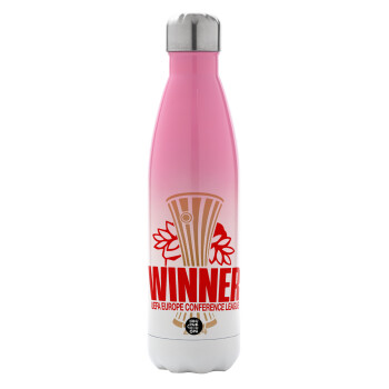 Europa Conference League WINNER, Metal mug thermos Pink/White (Stainless steel), double wall, 500ml