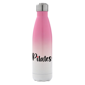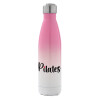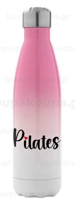 Pilates love, Metal mug thermos Pink/White (Stainless steel), double wall, 500ml