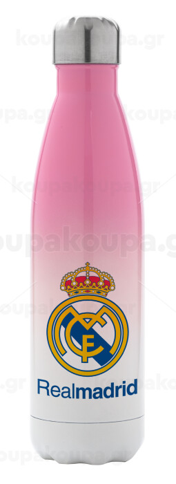 Real Madrid CF, Metal mug thermos Pink/White (Stainless steel), double wall, 500ml
