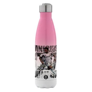 Vinícius Júnior (Βινίσιους Ζούνιορ), Metal mug thermos Pink/White (Stainless steel), double wall, 500ml
