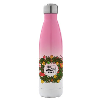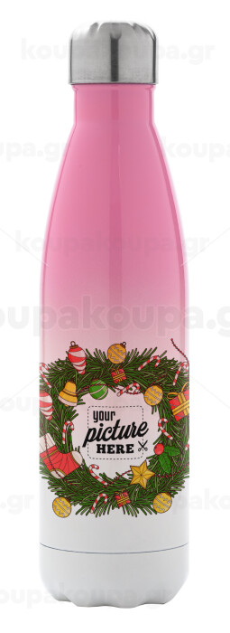 PHOTO Christmas twitch, Metal mug thermos Pink/White (Stainless steel), double wall, 500ml
