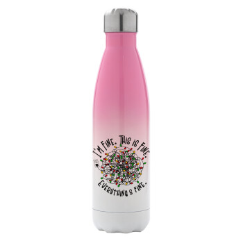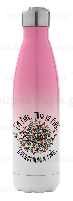 It's Fine I'm Fine Everything Is Fine, Metal mug thermos Pink/White (Stainless steel), double wall, 500ml