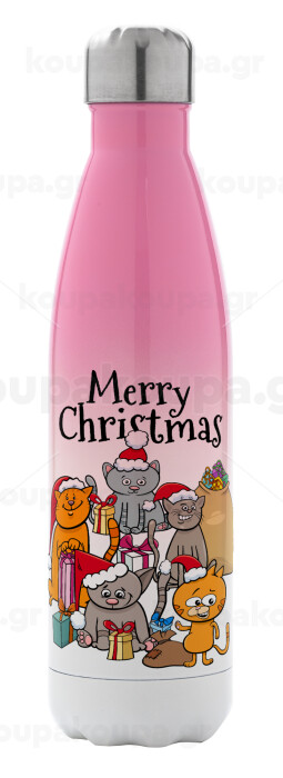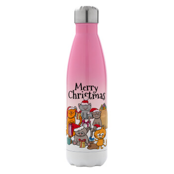 Merry Christmas Cats, Metal mug thermos Pink/White (Stainless steel), double wall, 500ml