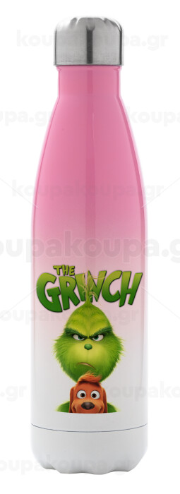 mr grinch, Metal mug thermos Pink/White (Stainless steel), double wall, 500ml