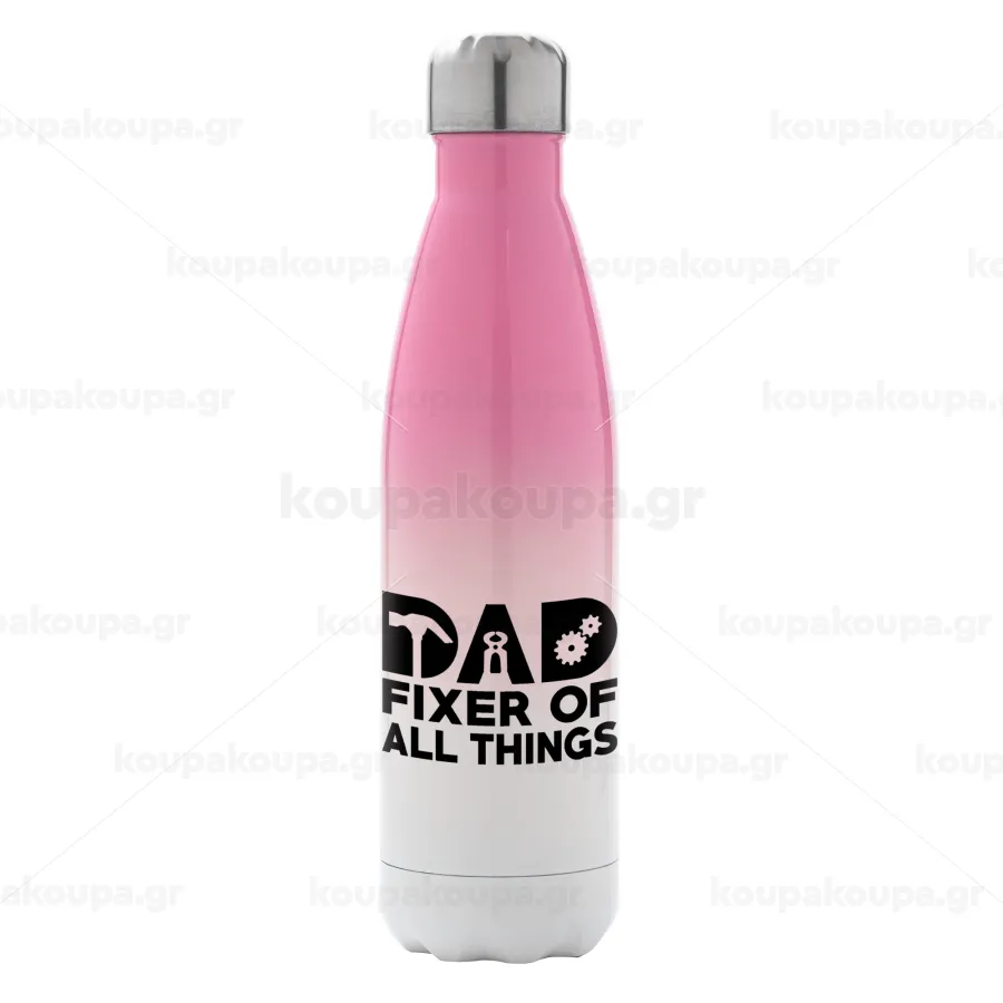 DAD, fixer of all thinks, Metal mug thermos Pink/White (Stainless steel), double wall, 500ml