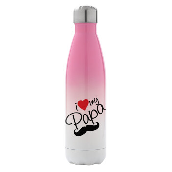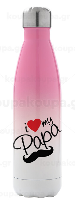 I Love my papa, Metal mug thermos Pink/White (Stainless steel), double wall, 500ml