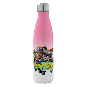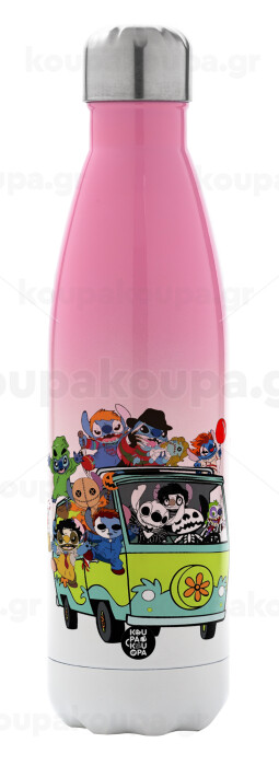 Stitch Halloween scooby car, Metal mug thermos Pink/White (Stainless steel), double wall, 500ml