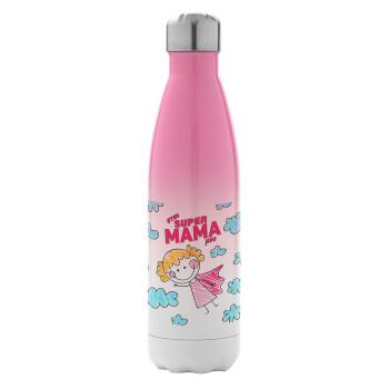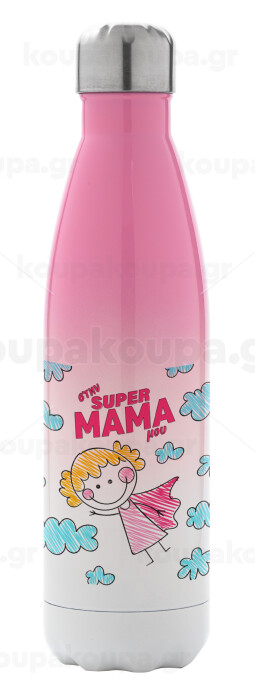 Στην SUPER μαμά μου, comic, Metal mug thermos Pink/White (Stainless steel), double wall, 500ml