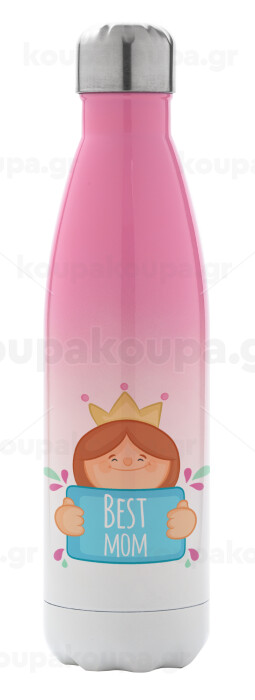 Best mom Princess, Metal mug thermos Pink/White (Stainless steel), double wall, 500ml