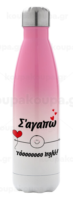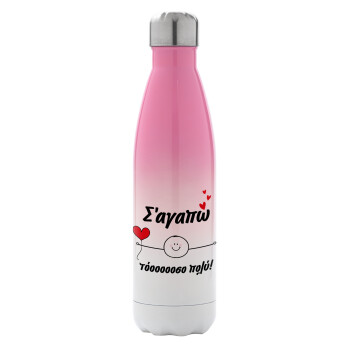 Σ΄αγαπώ τόοοοσο πολύ (Αγόρι)!!!, Metal mug thermos Pink/White (Stainless steel), double wall, 500ml