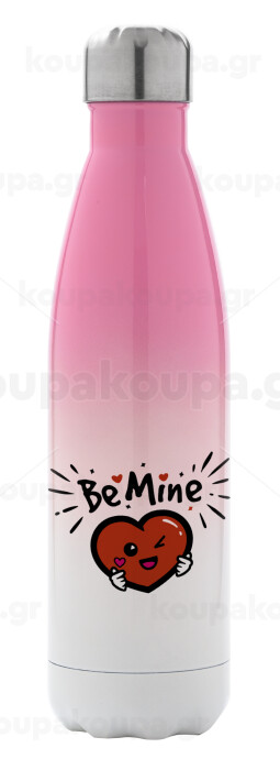 Be mine!, Metal mug thermos Pink/White (Stainless steel), double wall, 500ml