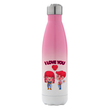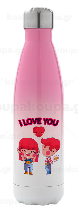Couple, I love you, Metal mug thermos Pink/White (Stainless steel), double wall, 500ml