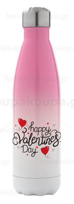 Happy Valentines Day!!!, Metal mug thermos Pink/White (Stainless steel), double wall, 500ml