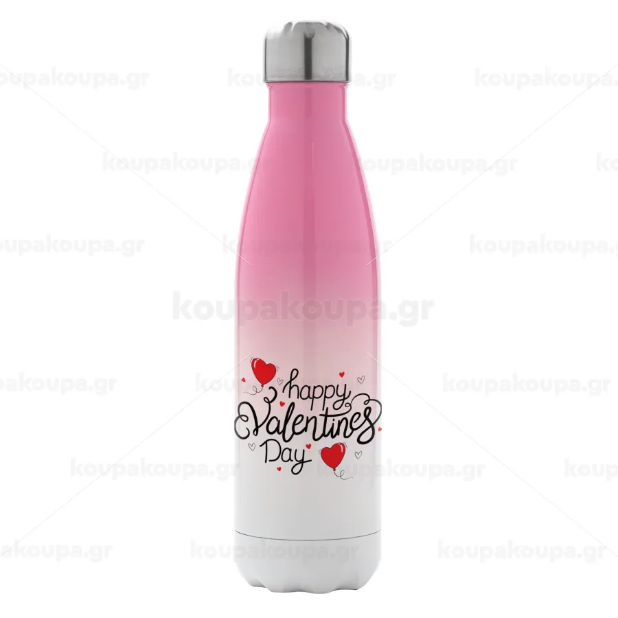 Happy Valentines Day!!!, Metal mug thermos Pink/White (Stainless steel), double wall, 500ml